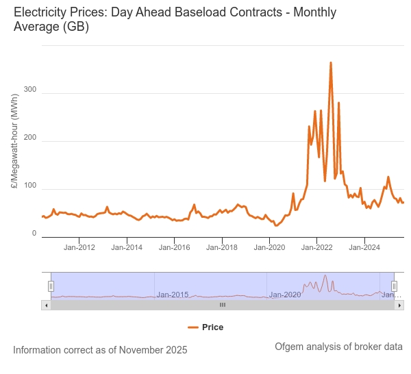 Here’s is some key data from the 2025 Business Electricity Price Index Statistics and Ofgem Wholesale market indicators.