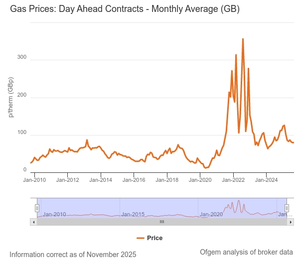 • The “energy crisis” of 2021-22 (gas, supply issues, Russia-Ukraine war) stands out as a large upward shock in price. Many business tariffs fixed during that time locked in higher rates.